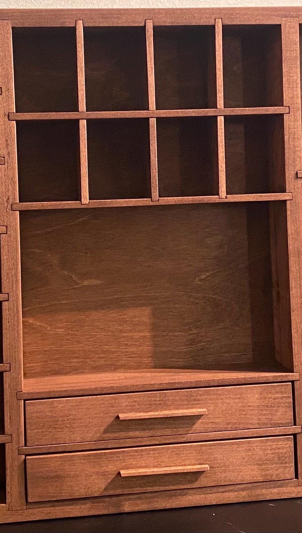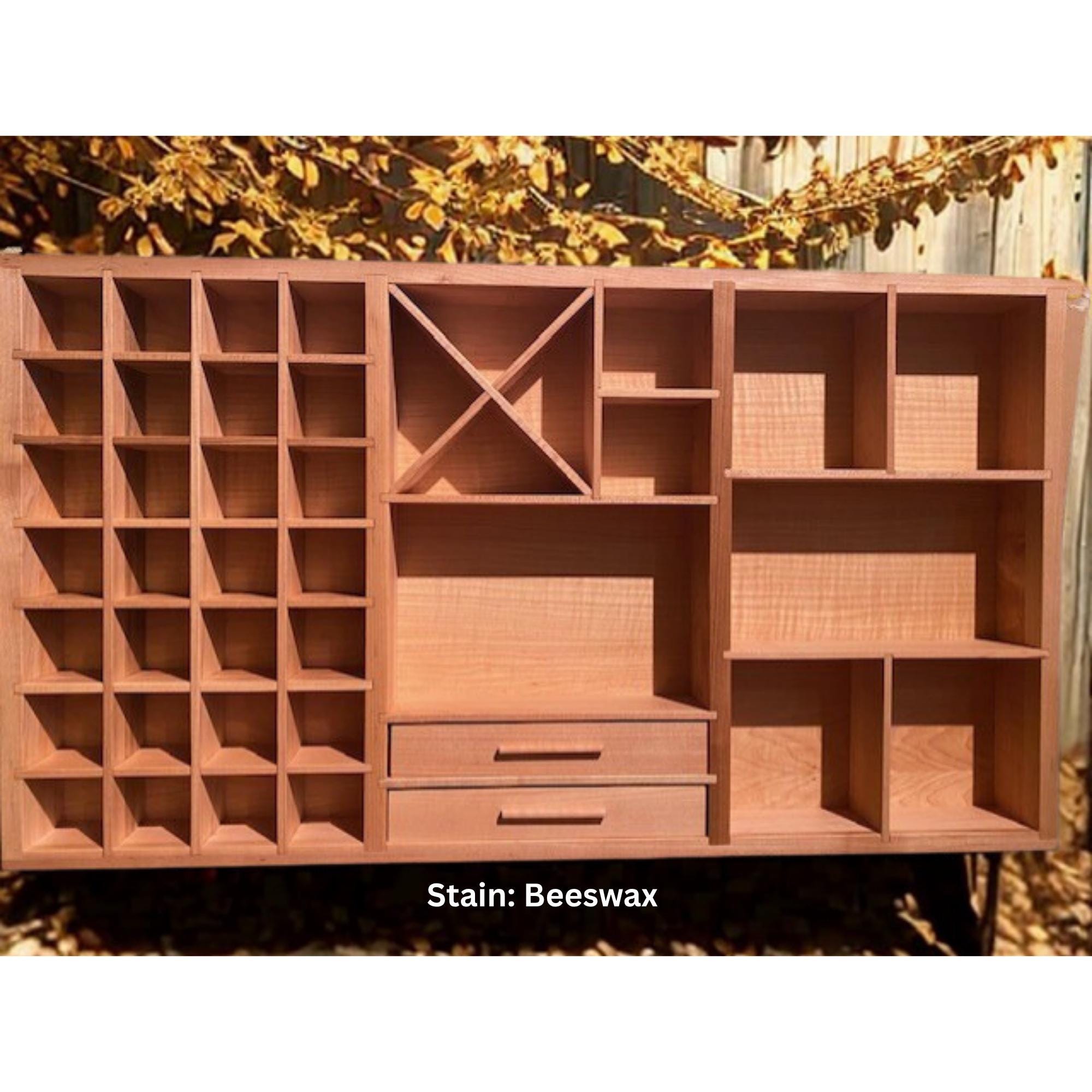Handmade Mini Wooden Printer’s Tray: Crystal & Collectibles Shelf