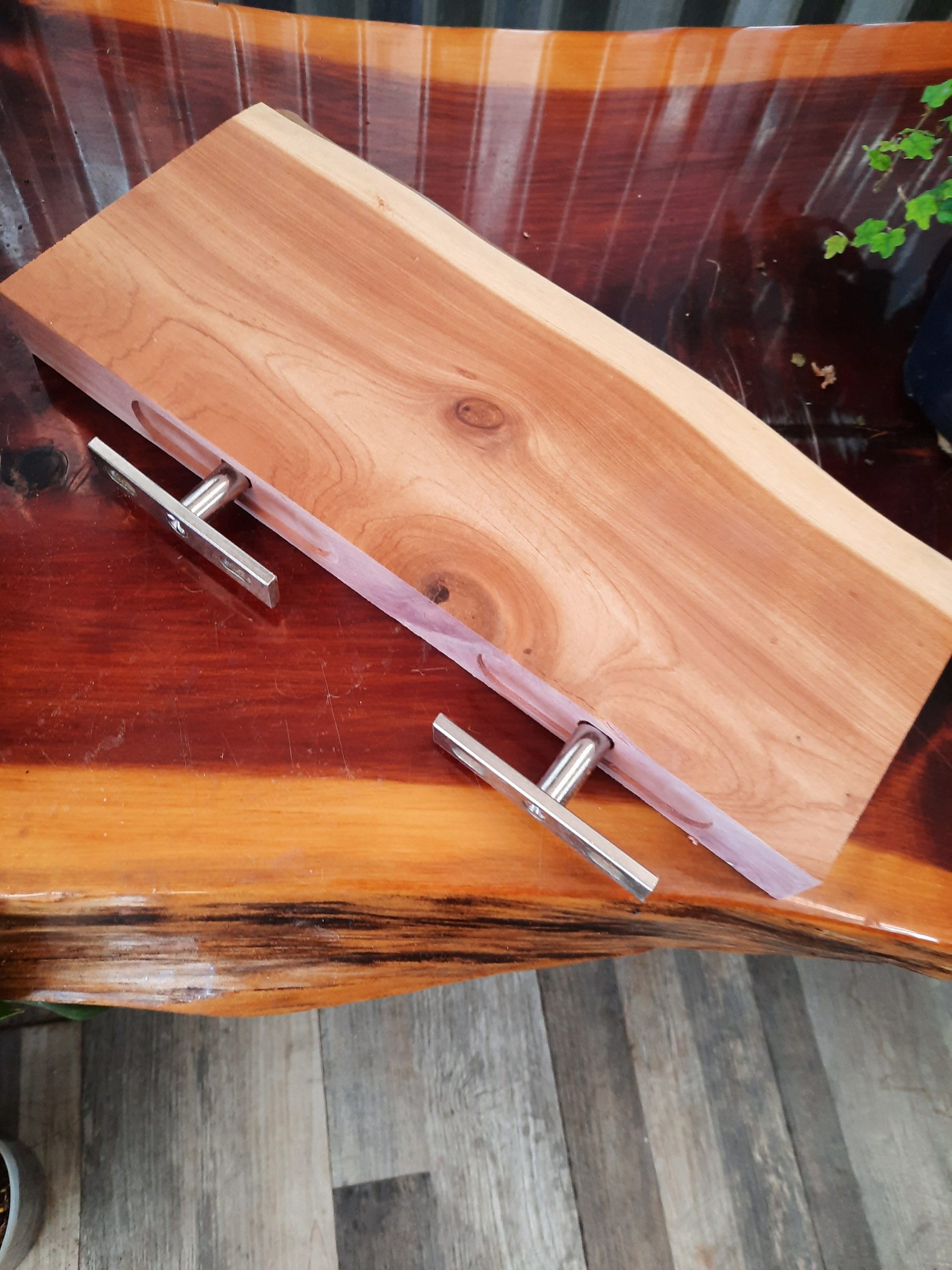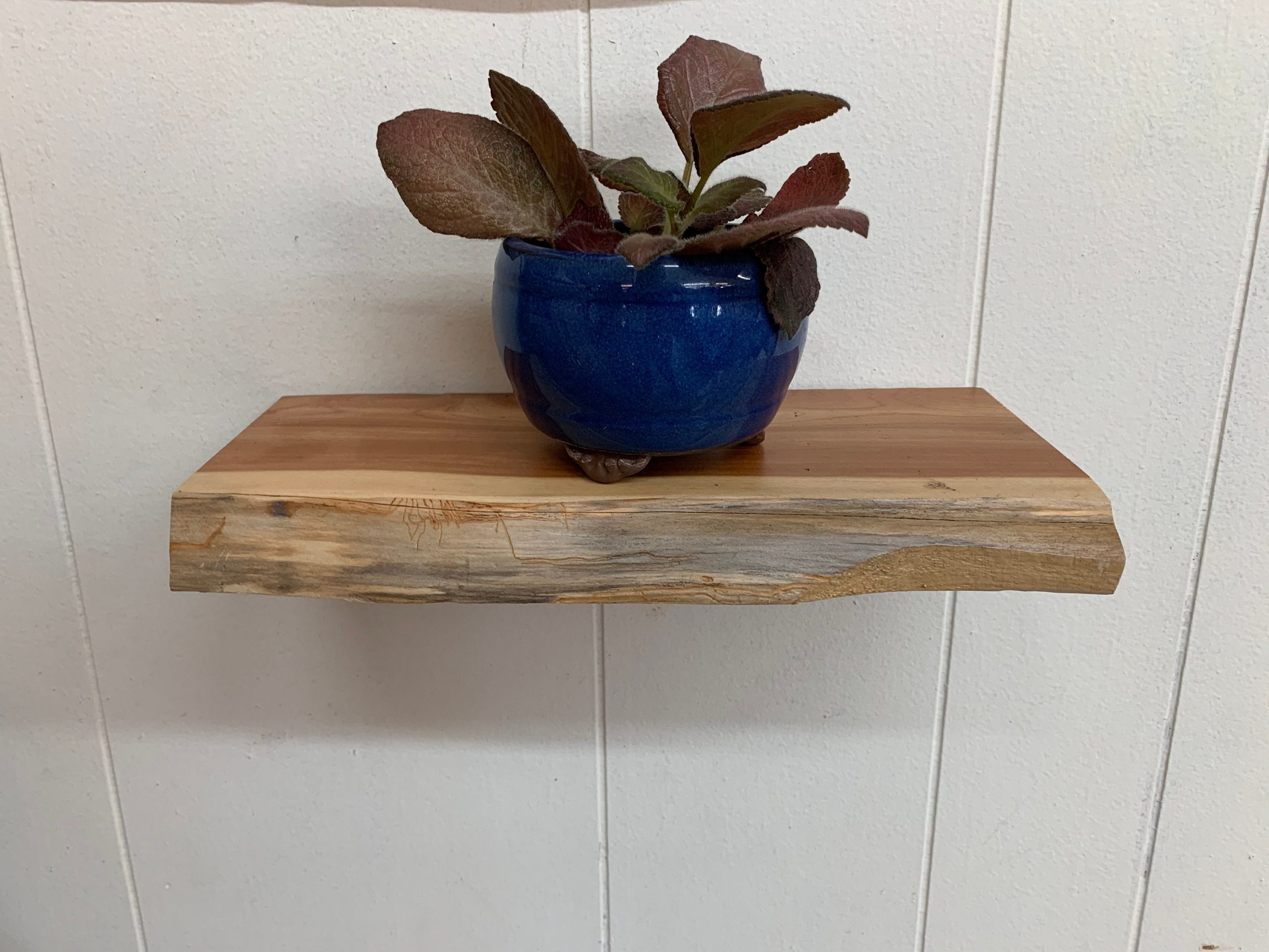 These are our custom small to medium-sized easy install floating wall-mount shelves. We offer these custom shelves in beautiful Cedar , Walnut and Maple to display your indoor plants, keys, candles, books, and other wall décor. Browse our minimalist shelf collection. Each shelf has soft rounded edges and is carefully finished with Satin polyurethane to bring out the natural beauty of the wood, ensure durability, and for easy cleaning.