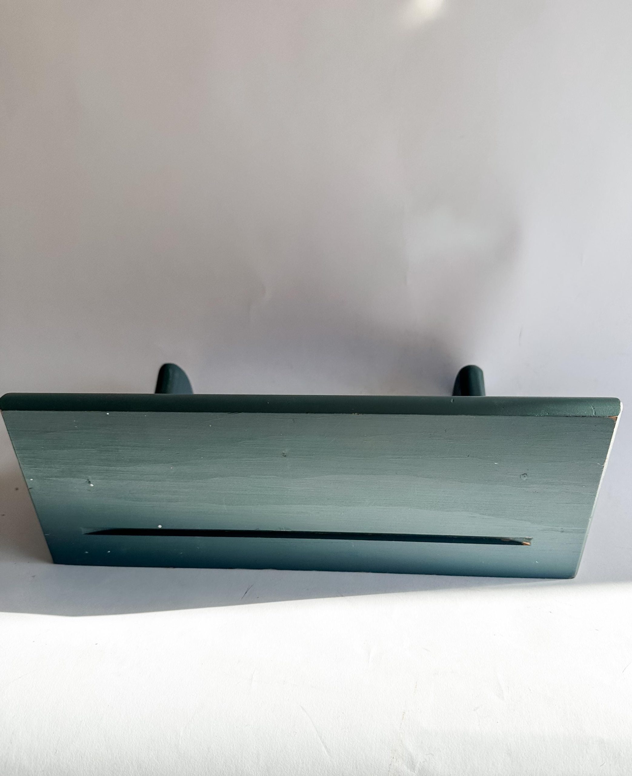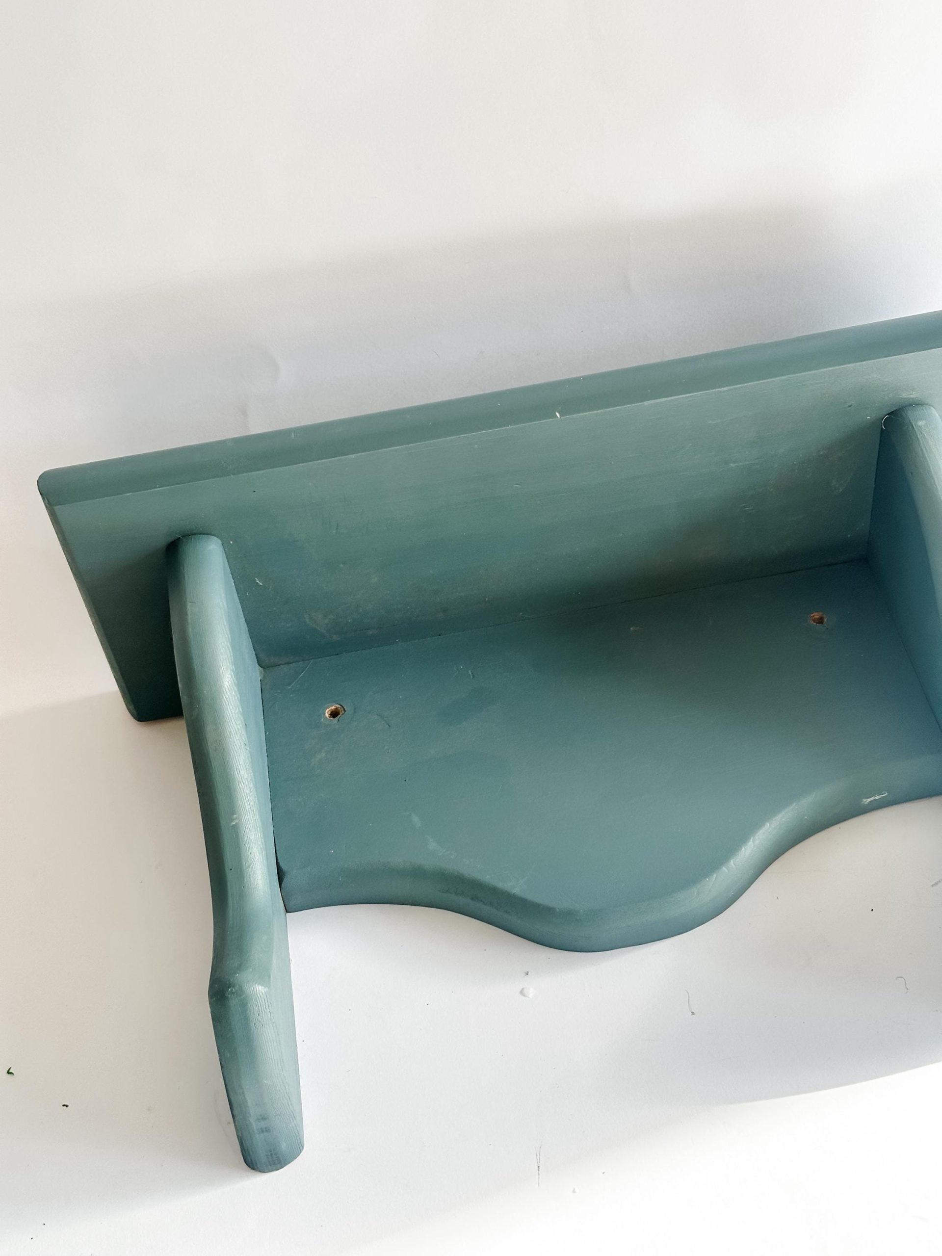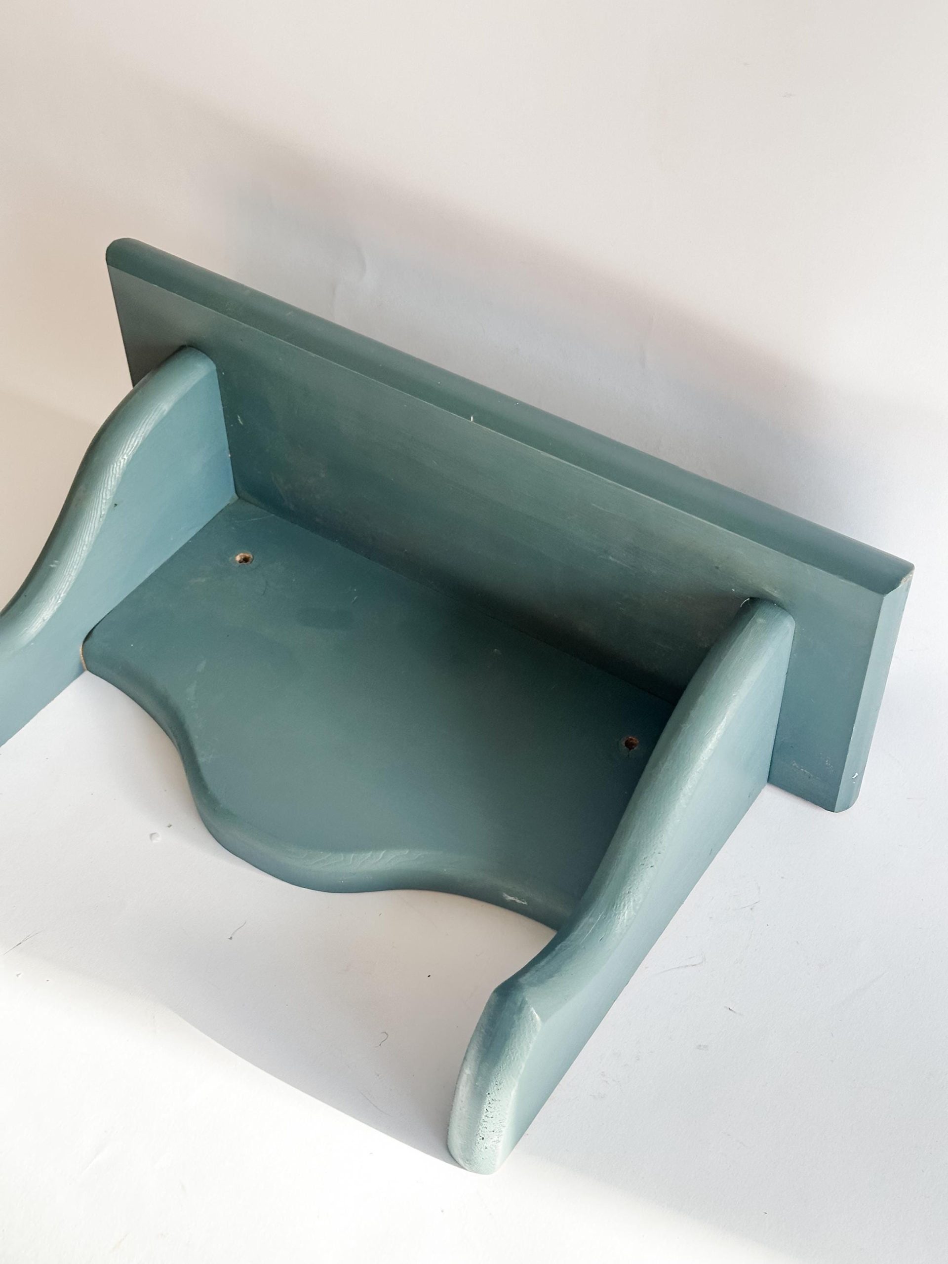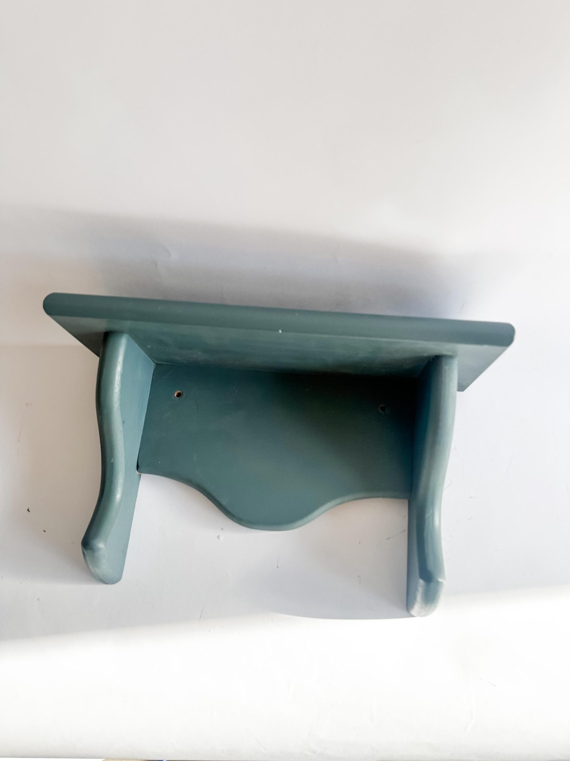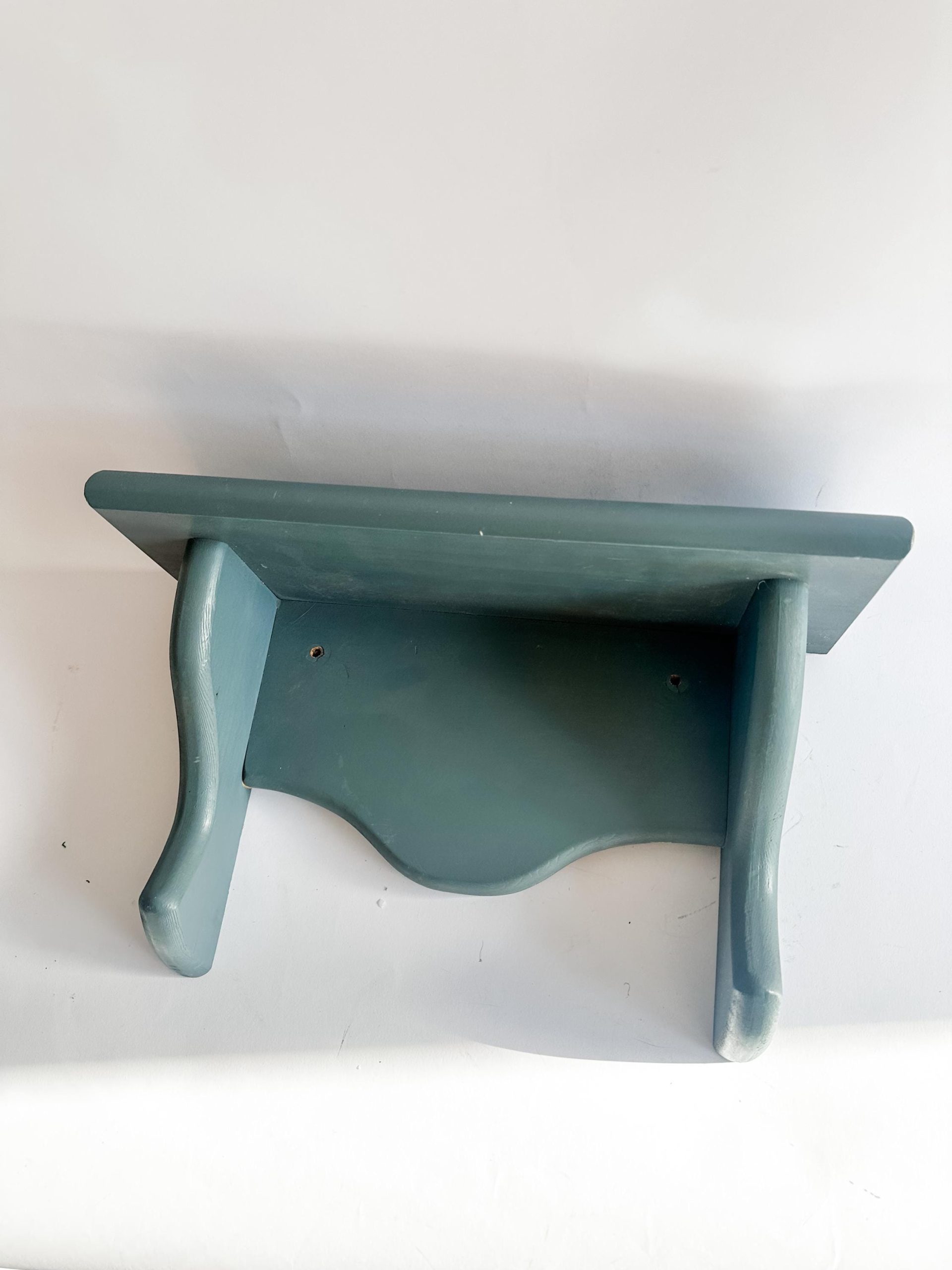 This charming vintage wooden wall shelf features a soft teal finish and gently curved supports, giving it that cozy cottage-meets-farmhouse feel. Perfect for displaying small framed art, pottery, plants, or seasonal decor, this piece adds instant character to any wall.